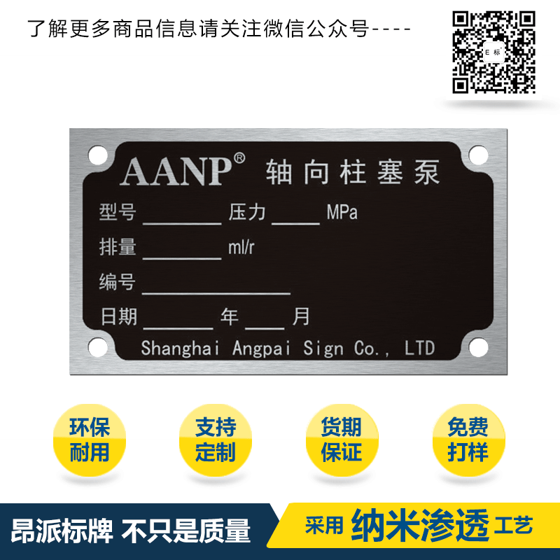 柱塞泵防偽銘牌 時間:2025-05-06 12:54:48 分類:防偽銘牌 瀏覽:次 標牌、銘牌、鋁牌的特色:此種工藝的特性,能使鋁制產(chǎn)品表面產(chǎn)生堅硬的保護層,此保護層的特點是:耐候性低、抗惡劣天氣,不受臭氧、空氣污染、酸雨侵襲;耐紫外線、抗紫外線、抗粉化;耐化學品性、抗酸堿侵蝕;耐腐蝕性,氧化潮氣鹽份滲透率低;防霉菌污損耐濕性優(yōu),不會變色、褪色、爆裂、并能長期保持光潔如新,易于保養(yǎng)清洗。 分享收藏: 上一個: 設備防偽鋁合金銘牌 下一個: 電磁閥防偽銘牌 相關案例