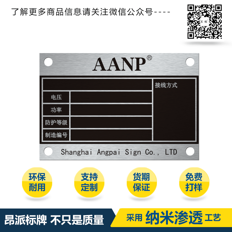 生產(chǎn)流程和管理嚴格按ISO質(zhì)量體系去執(zhí)行。銘牌產(chǎn)品在2013年就已通過SGS的檢測,在2019年