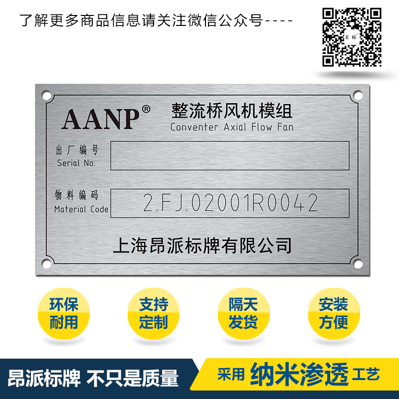 電機(jī)銘牌 時間:2018-09-07 15:52:06 分類:金屬銘牌 瀏覽:次 標(biāo)牌、銘牌、鋁牌的品質(zhì): 本產(chǎn)品具有耐酸堿、耐熱震、耐高溫、抗沖擊、還具有很強(qiáng)的耐曬、耐磨擦、耐高溫、耐腐蝕、耐有機(jī)溶劑等特性,抗紫外線、抗粉化、不受臭氧、空氣污染、在室外陽光照射不易褪色,廣泛應(yīng)用于化工、電力和電信等腐蝕性強(qiáng)或須把標(biāo)志牌懸掛于室外的企業(yè),歡迎新老客戶拿圖拿樣來定做.不分量大小都可以定做價格合理.質(zhì)量保證交貨準(zhǔn)時。 分享收藏: 上一個: 銘牌 下一個: 常開銘牌 相關(guān)產(chǎn)品 陽極氧化指示小標(biāo)牌 自動化設(shè)備鋁標(biāo)牌 汽車零配件鋁標(biāo)牌 陽極氧化指示標(biāo)牌 電磁閥萬用鋁合金防偽標(biāo)牌 電磁閥溢流閥標(biāo)牌